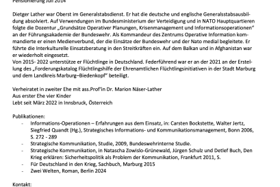 Im interaktiven Vortrag mit dem Buchautor und ehem. Oberst im Generalstabsdienst Dietger Lather wird über interkulturelle Kommunikation aufgeklärt und gemeinsam diskutiert. Im Anschluss daran findet eine Führung durch das neue Integrationshaus statt. Die Teilnahme ist kostenlos.