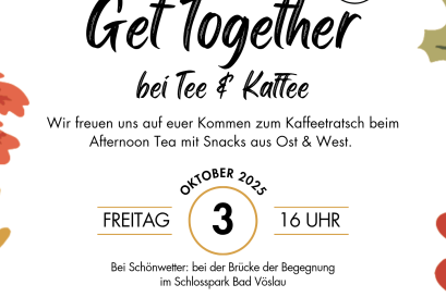 Wir freuen uns auf euer Kommen zum Kaffeetratsch beim Afternoon Tea mit Snacks aus Ost & West anlässlich des Langen Tags der Flucht bei der Brücke der Begegnung im Schlosspark.